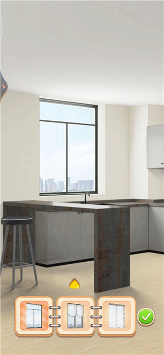 1、当进入装修环节时,屏幕下方会提供三种不同风格的家居选项,你可以根据整体设计需求或个人喜好自由搭配。