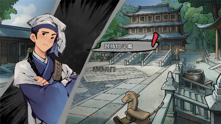 2. 先调查临渊阁,再前往柴房与师姐对话触发舌战。