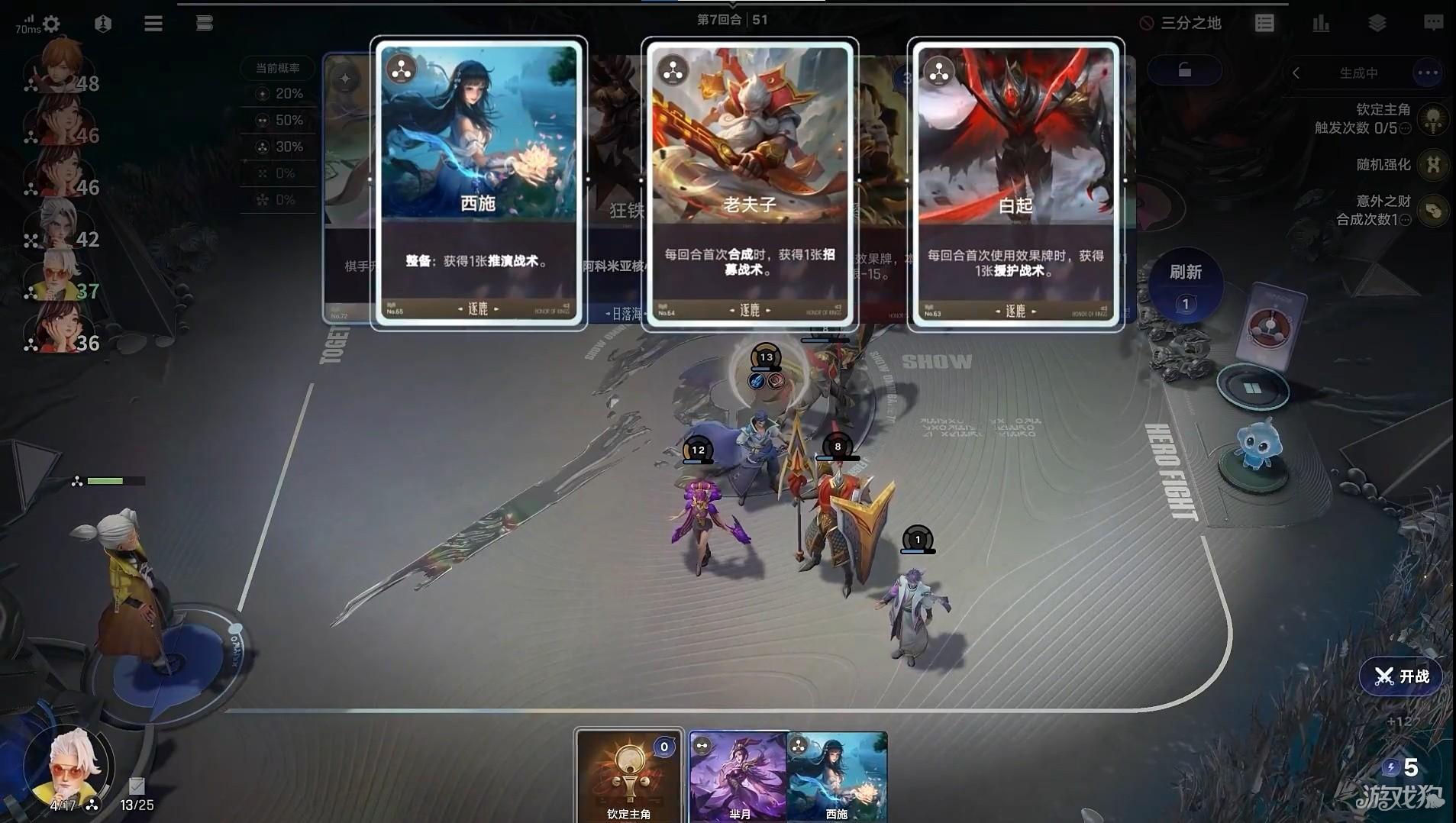 5、第四回合左右升至3级,开始补全西施、老夫子、白起等辅助单位,为中期发力奠定基础。