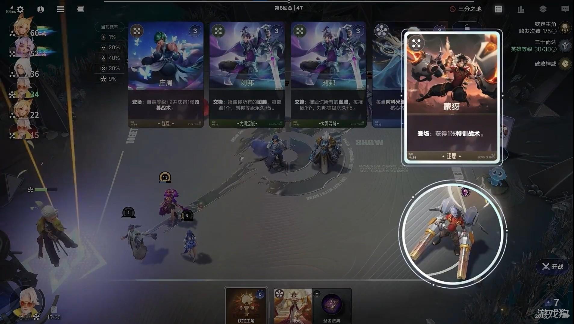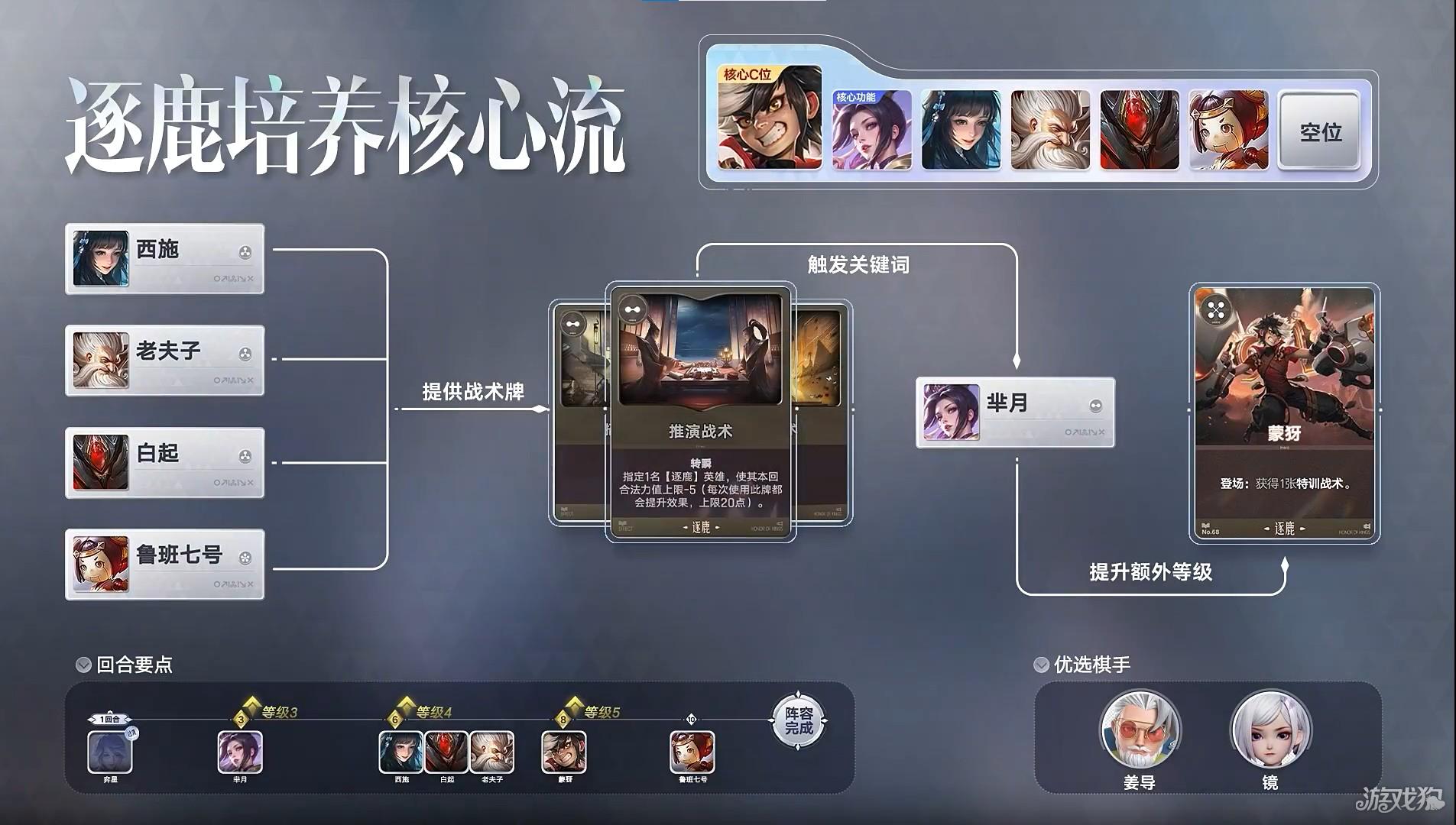 4、建议在前三回合内将棋手升至2级,优先搜寻核心发动机——芈月。