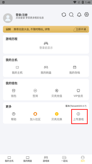 1、打开趣点云游戏App,进入底部导航栏的“我的”页面;